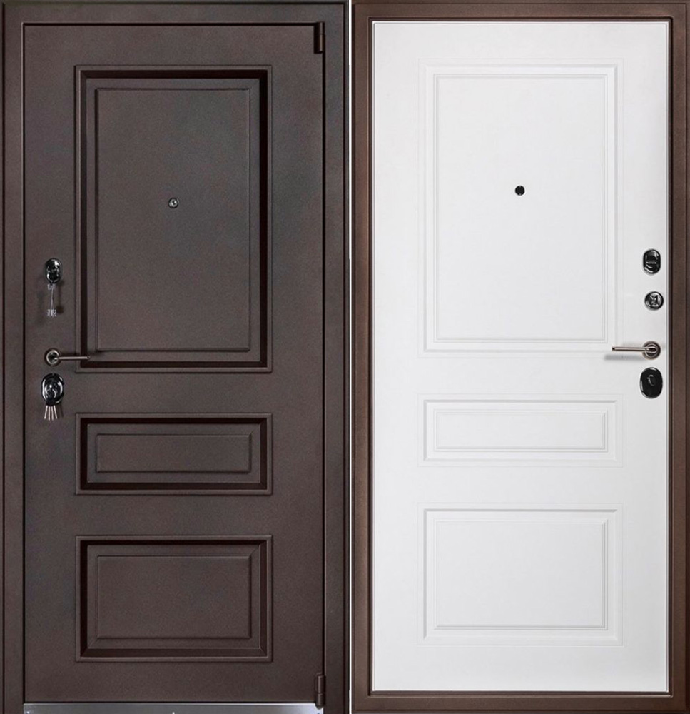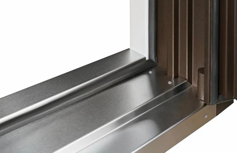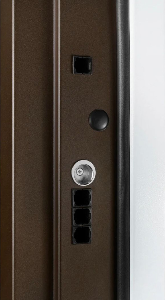 Толщина 170 мм., терморазрыв обеспечивается наличием изоляционного слоя с низкой теплопроводностью, Двухсторонний окрас; внешний цвет темно-коричневый Муар с разноцветными блесками + цинкогрунтовочный слой, внутренний цвет шагрень белая + цинкогрунтовочный слой порошково-полимерное покрытие.