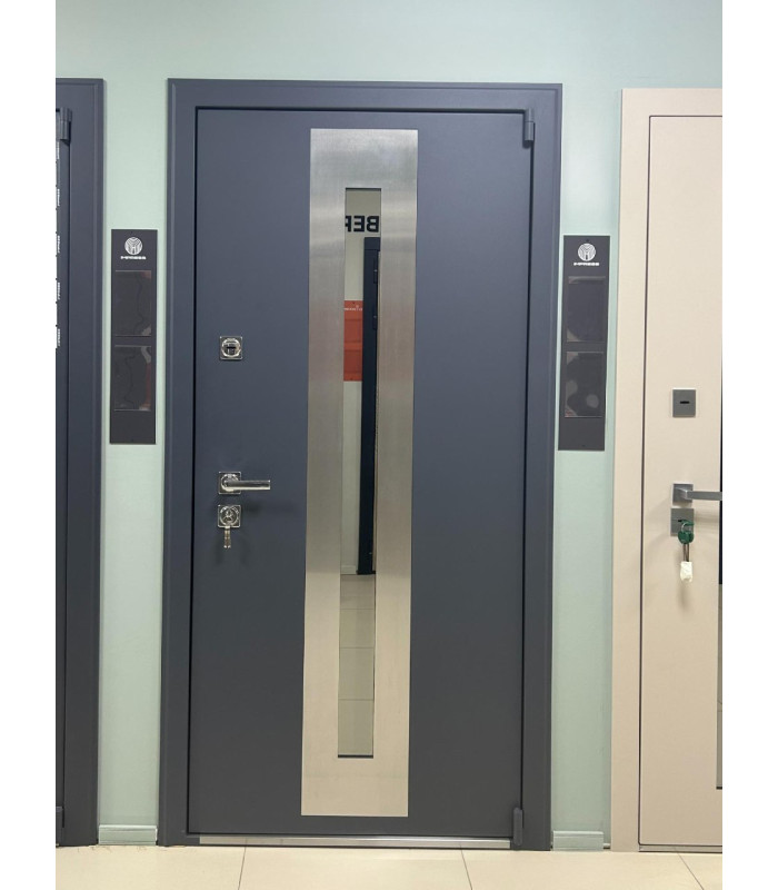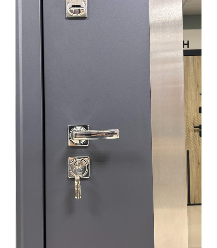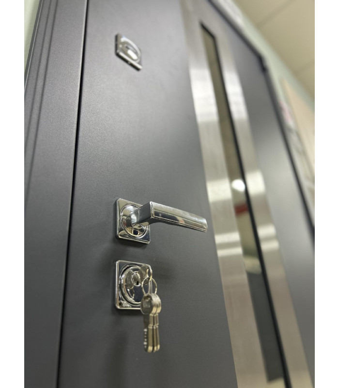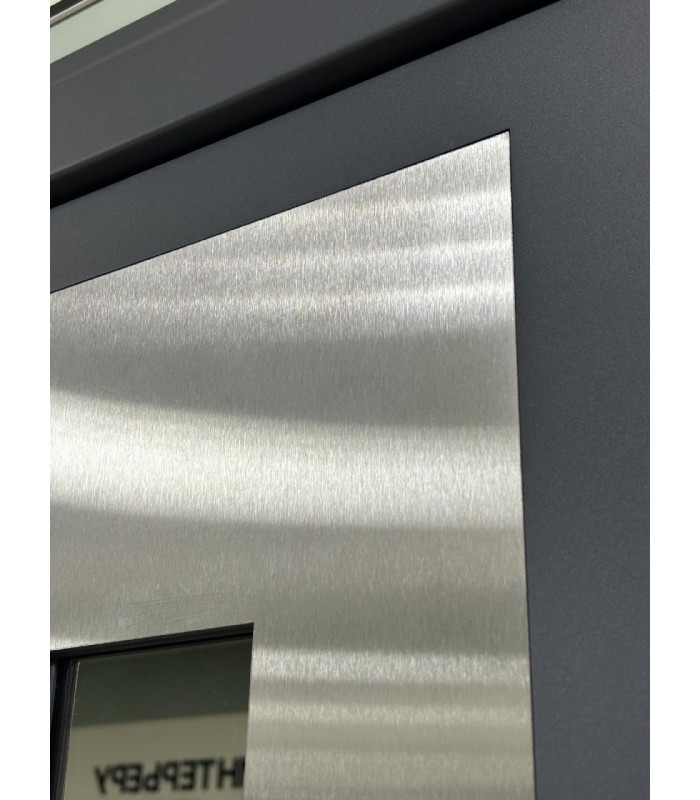 Внешнее покрытие: Муар графит RAL 7024, Цинкогрунт AkzoNobel, Вставка из нержавеющей стали