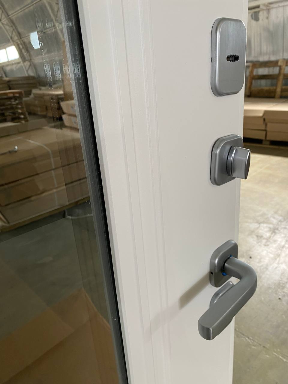 • Замки сувальдные KALE, IV (наивысший) класс взломостойкости, дополнительная защита от высверливания: две пластины из высоколегированной стали с обеих сторон замка; диаметр ригелей: 16 мм. Независимая ночная задвижка. 3 противосьёмных штыря.