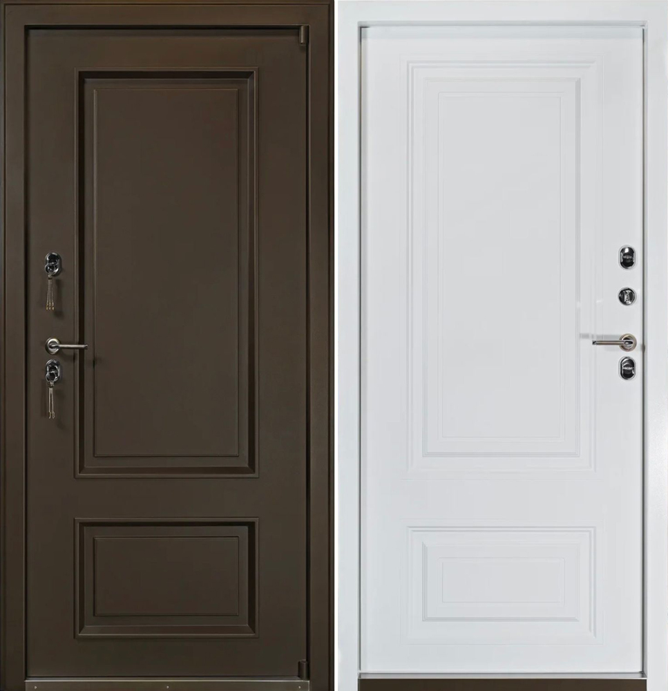толщина 165 мм., терморазрыв обеспечивается наличием изоляционного слоя с низкой теплопроводностью, Двухсторонний окрас; внешний цвет темно-коричневый Муар с разноцветными блесками + цинкогрунтовочный слой, внутренний цвет шагрень белая + цинкогрунтовочный слой порошково-полимерное покрытие;