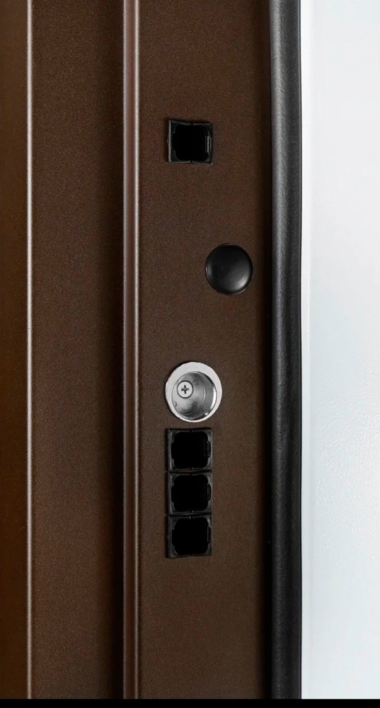 толщина 165 мм., терморазрыв обеспечивается наличием изоляционного слоя с низкой теплопроводностью, Двухсторонний окрас; внешний цвет темно-коричневый Муар с разноцветными блесками + цинкогрунтовочный слой, внутренний цвет шагрень белая + цинкогрунтовочный слой порошково-полимерное покрытие.