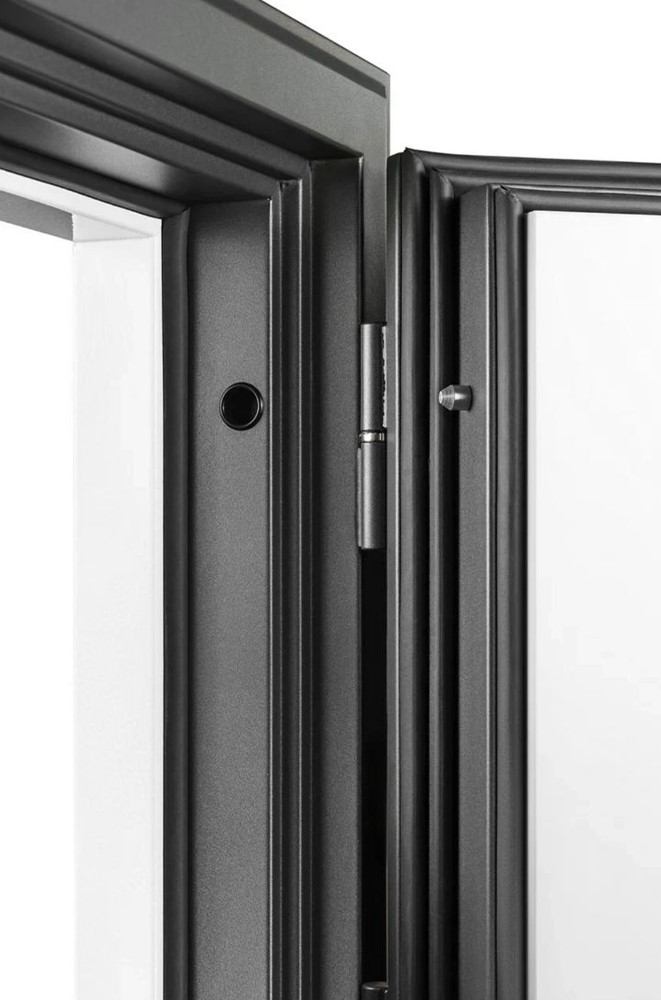 толщина 115 мм. терморазрыв обеспечивается наличием изоляционного слоя с низкой теплопроводностью, Двухсторонний окрас; внешний цвет: AkzoNobel Муар металлик мокрый асфальт + цинкогрунтовочный слой, внутренний цвет шагрень белая + цинкогрунтовочный слой порошково-полимерное покрытие;