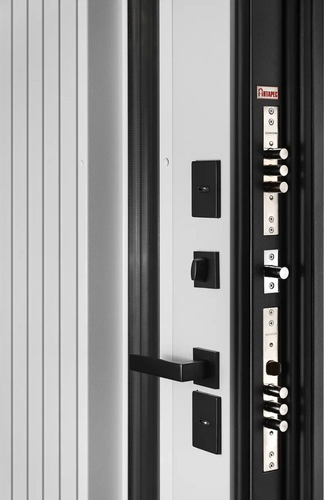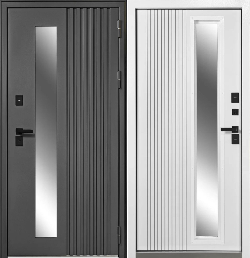 толщина 170 мм., терморазрыв обеспечивается наличием изоляционного слоя с низкой теплопроводностью, Двухсторонний окрас; внешний цвет: AkzoNobel Муар металлик мокрый асфальт + цинкогрунтовочный слой, внутренний цвет шагрень белая + цинкогрунтовочный слой порошково-полимерное покрытие.