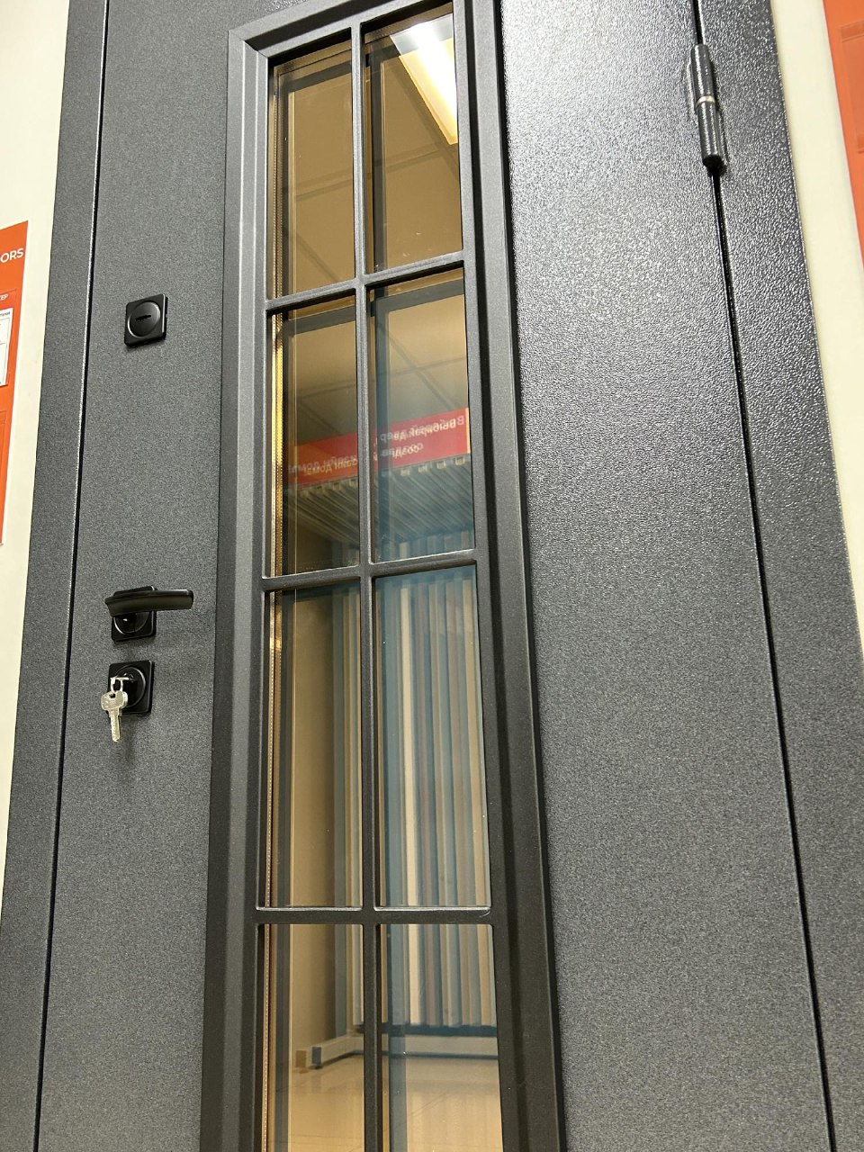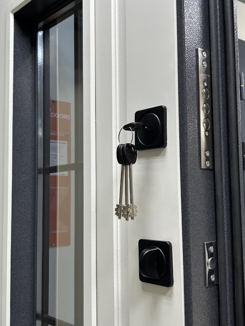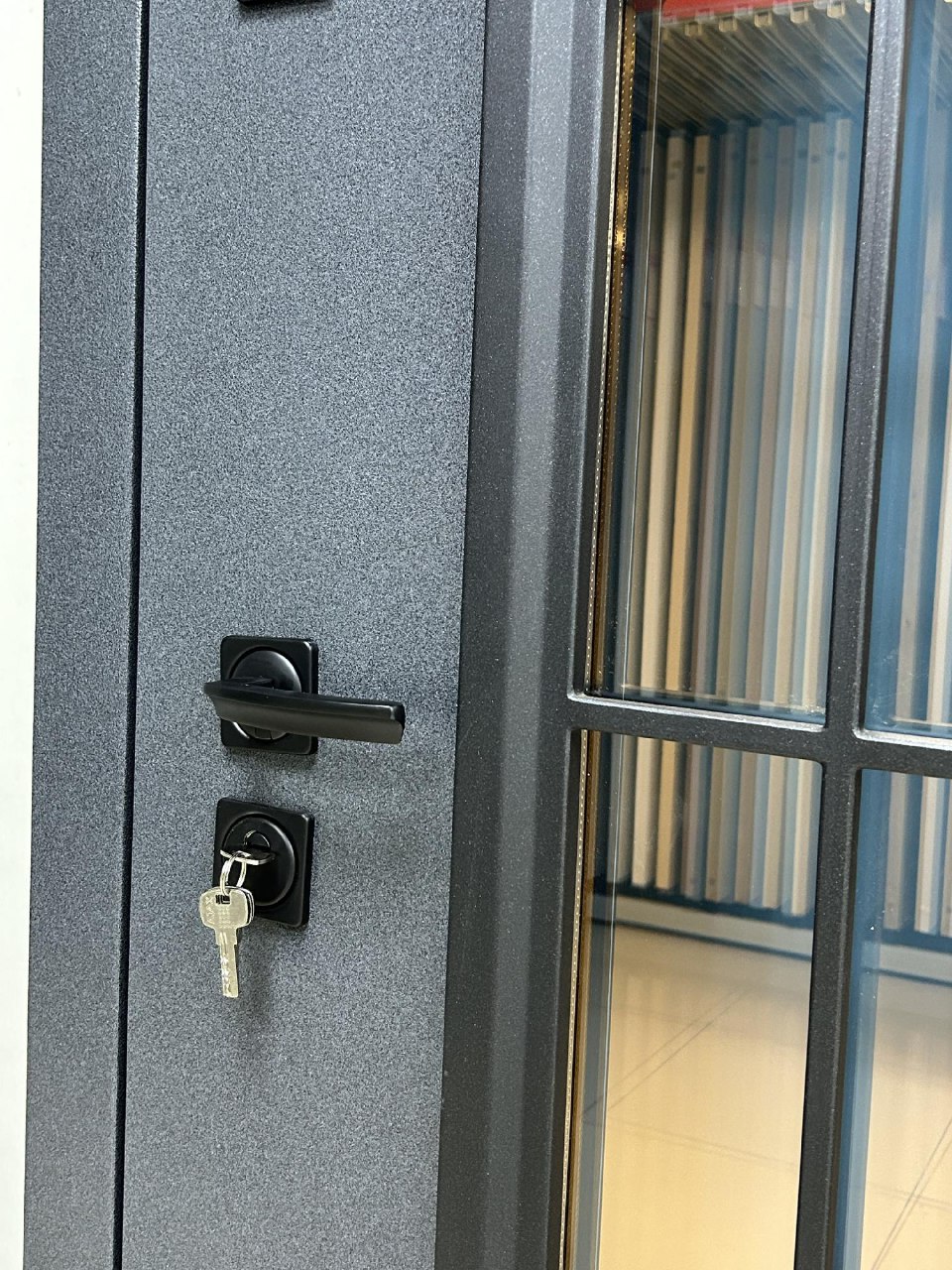 Бристоль Толщина полотна: 100 мм Внешнее покрытие: Букле серый, атмосферостойкий AkzoNobel Стеклопакет: тонированный бронза, кованные элементы Внутреннее покрытие: МДФ-панель 10 мм, Эмалит белый Утеплитель: минеральная плита Уплотнитель: 3 контура уплотнения Замки: цилиндровый и сувальный Гардиан (4 класс взомостойкости) Противосъемные ригели: 3 шт, 12 мм Петли: 3 шт, внешние, открывание 180 Короб: закрытый, утепленный Ручка: раздельная, цвет - Черный Глазок: отсутствует Эксцентрик: есть Стандартный размер по коробу: 860/960*2050