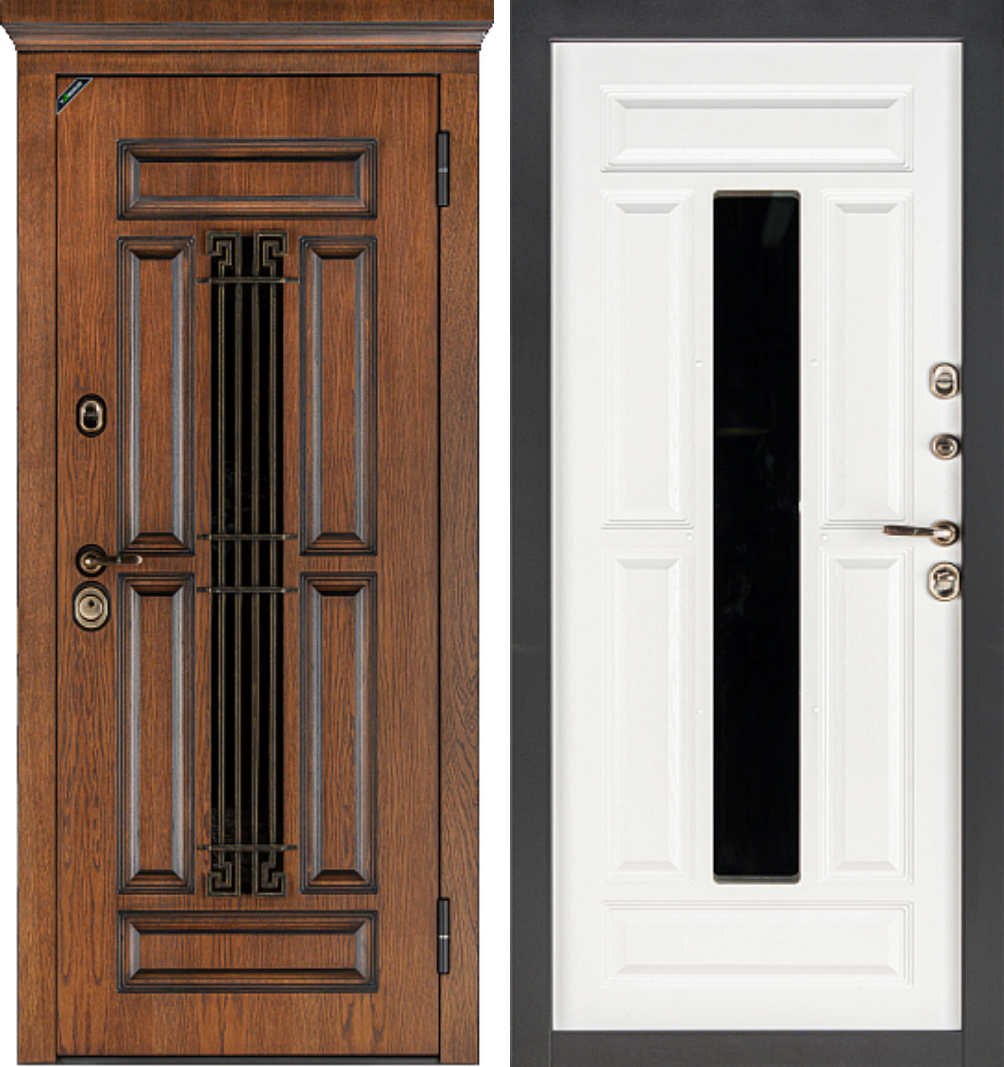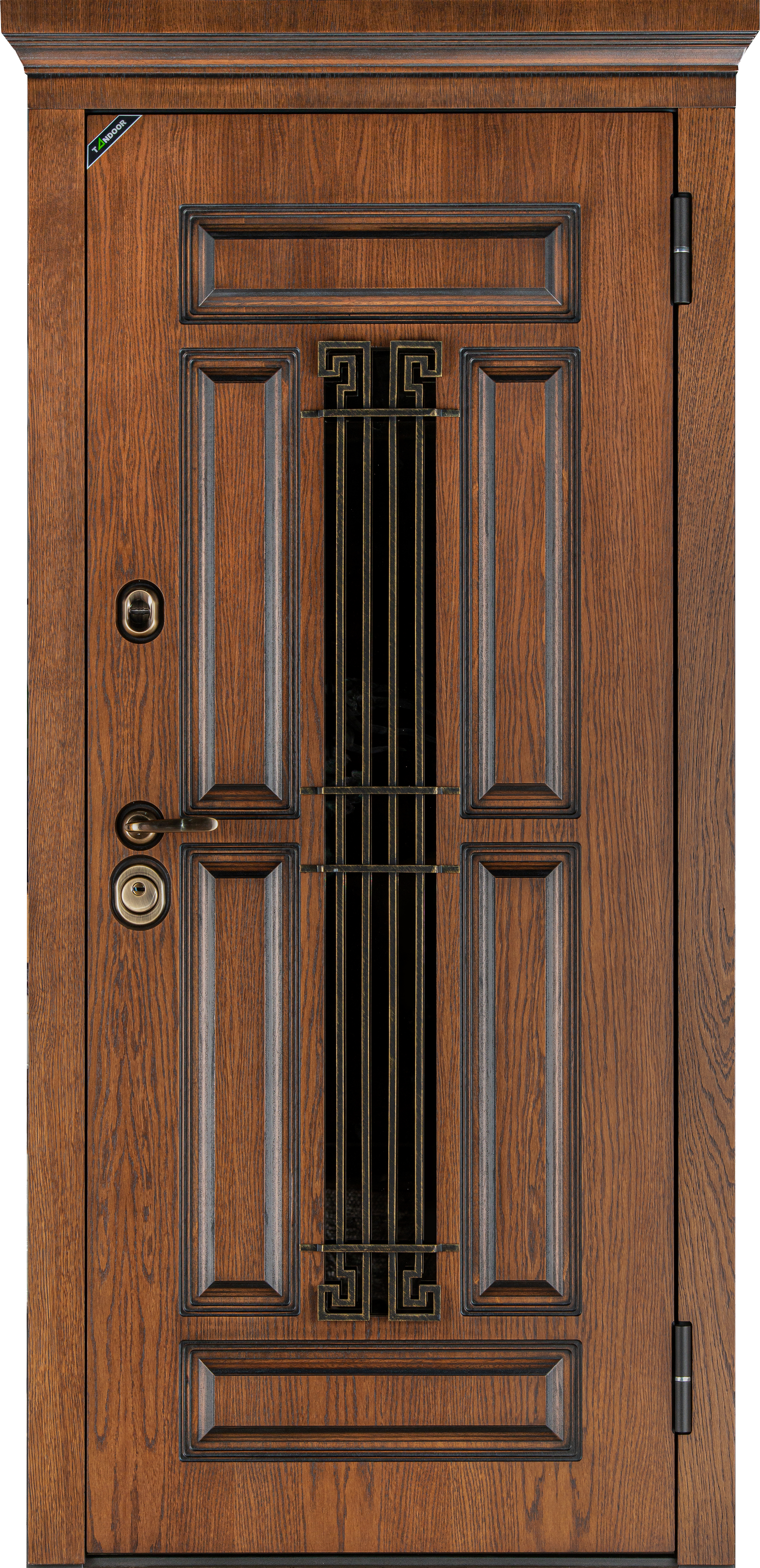 Входная дверь со стеклом и ковкой с покрытием МДФ/МДФ