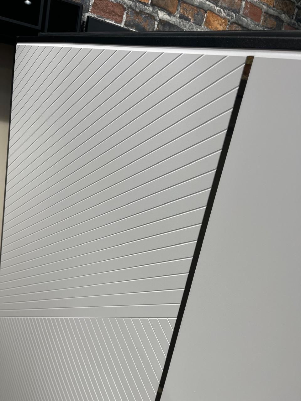 Отделка внутри: панель МДФ 10 мм, пленка гладкая матовая, цвет белый, нержавейка золото.