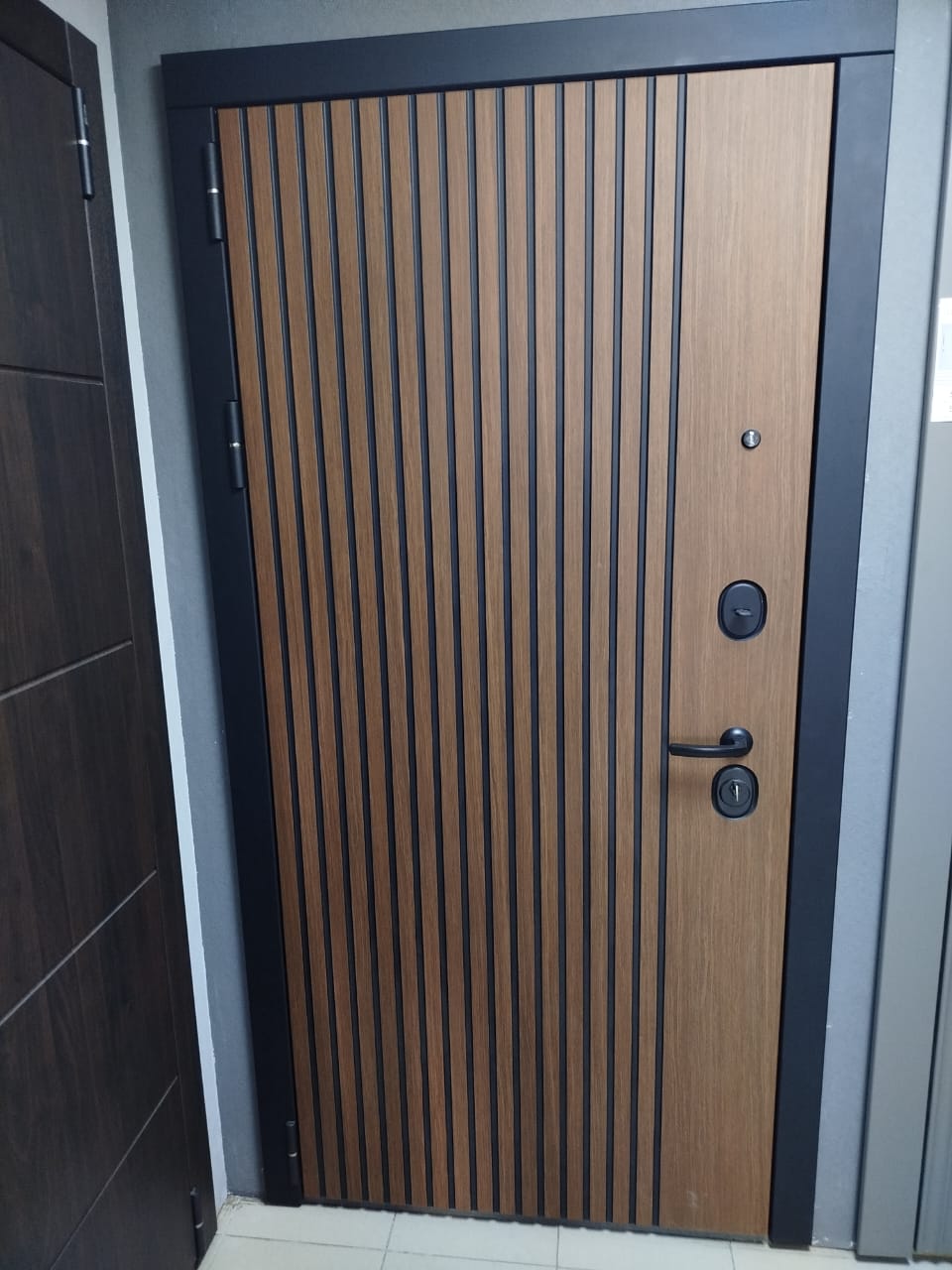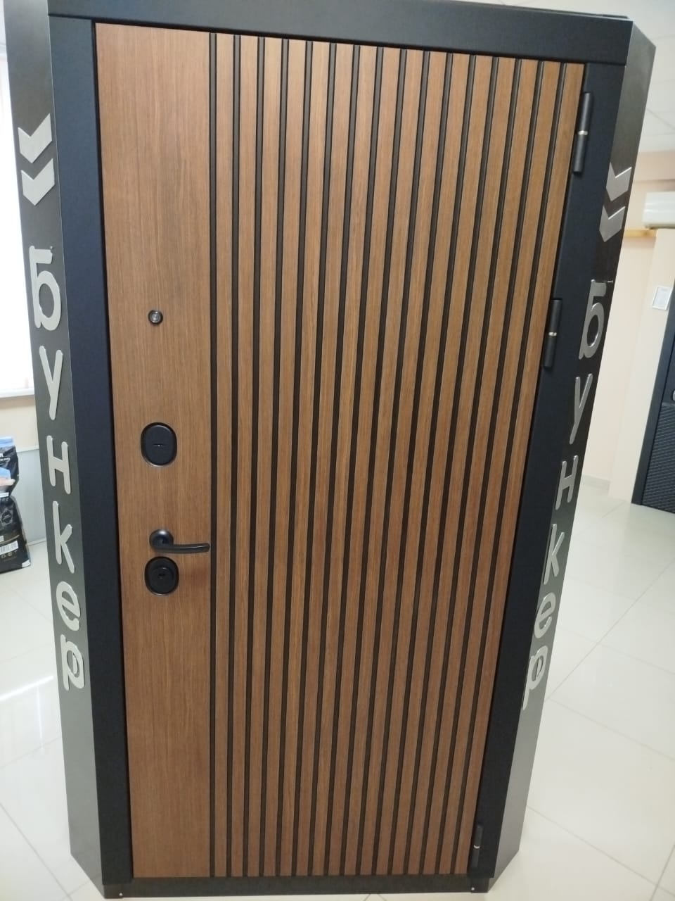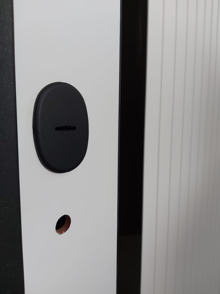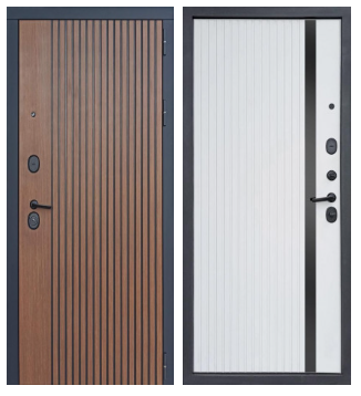 Металлическая входная дверь Юта Дуб белый Отделка снаружи: панель МДФ 10мм, пленка дуб темный, патина черная по фрезеровке Отделка внутри: панель МДФ 10 мм, пленка (не софт) цвет белый, вставка- черная лакобель Толщина двери 104 мм. Дверь имеет закрытый утепленный короб, эксцентрик Наполнитель: Базальтовая плита Двери в наличии на складе с правым и левым открыванием. Фурнитура хром, независимая ночная задвижка Дверь имеет 3 контура уплотнения, сложный притвор На двери установлены замки Гардиан