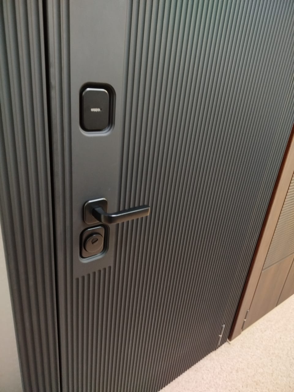 Особенность Входная дизайнерская дверь Слим с фрамугой.