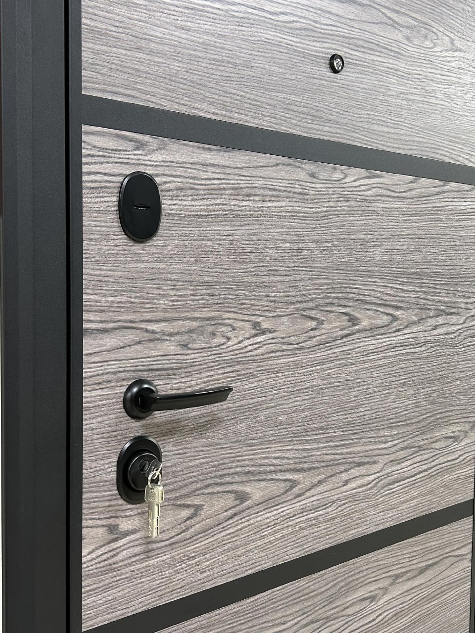 Кантри Толщина полотна: 100 мм Внешнее покрытие: МДФ 10 мм,Tangent OAK, Chokolate Transvers Внутреннее покрытие: МДФ-панель 10 мм, Грей Утеплитель: минеральная плита Уплотнитель: 3 контура уплотнения из вспененной резины Замки: цилиндровый и сувальдный Гардиан (4 класс взломостойкости) Противосъемные ригели: 3 шт, 12 мм Петли: 3 шт, внешние, открывание 180 Короб: закрытый, утепленный Ручка: раздельная, цвет - черный Ночная задвижка: есть Глазок: расширенного обзора, цвет - черный Броненакладка: есть Эксцентрик: есть Наличник: 8 см Стандартный размер по коробу: 860/960*2050 мм