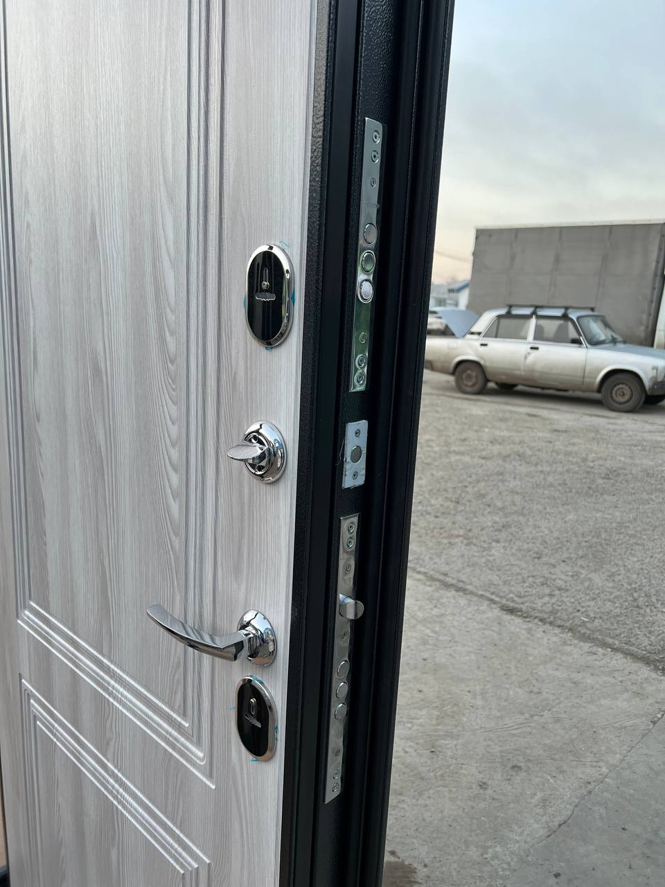 Дверь с терморазрывом 24 мм на полотне и коробе атмосферостойкое порошково полимерное «Антик серебро » МДФ панель, цвет - ривьера айс 110 мм 137 мм ППС 3 контура Открытый 3 петли внешние открывание 180* "сувальдный Kарат/MONARCH IV/Галеон (наивысший) класс взломостойкости,дополнительная защита от высверливания: две пластины из высоколегированной стали с обеих сторон замка; диаметр ригелей: 16 мм" "сувальдный Kale/Карат/MONARCH/Галеон IV (наивысший) класс взломостойкости,дополнительная защита от высверливания: две пластины из высоколегированной стали с обеих сторон замка; диаметр ригелей: 16 мм" раздельная, цвет - хром независимая металлический для защелки основного замка противосъемные штыри, 2 шт