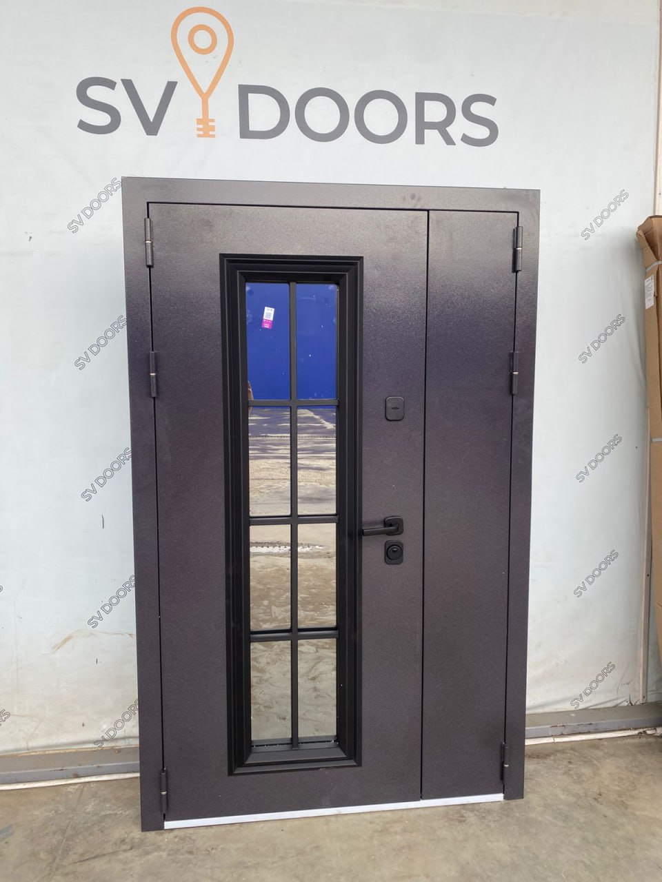 Брюссель Толщина полотна: 110 мм Внешнее покрытие: Букле кварц + цинкогрунт, атмосферостойкий AkzoNobel Внутреннее покрытие: МДФ-панель 10 мм, Веллюто Бьянко Стеклопакет: двухкамерный Утеплитель: мин. плита Уплотнитель: 3 контура уплотнения Петли: 3 шт, внешние Замки: цилиндровый и сувальный Гардиан (4 класс взломостойкости) Противосъемные ригели: 3 шт Короб: открытый, терморазрыв Ручка: раздельная, цвет - черный Ночная задвижка: есть Эксцентрик: есть Наличник: 80 мм Стандартный размер по коробу: 1200*2050 мм / 1200*2200 мм
