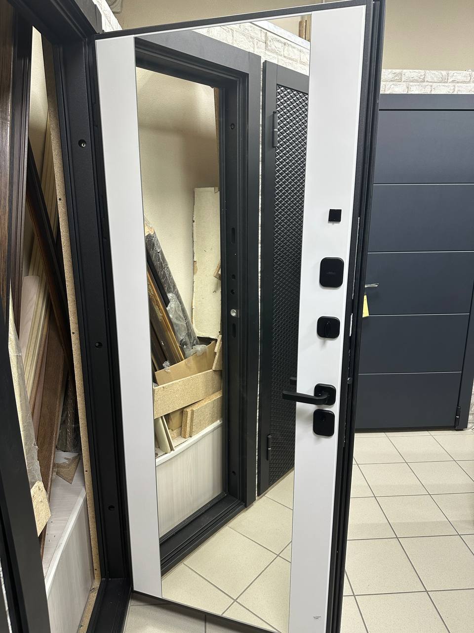 Фрезерованная МДФ-панель, цвет -эмалит белый, накладное зеркало с защитной пленкой
