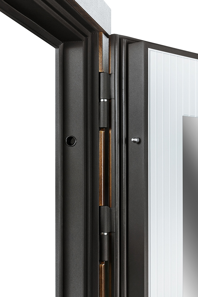 толщина 110 мм., сложный гнутый профиль t=1,8 мм., утеплена изнутри, цвет муар черный, порошковая краска;