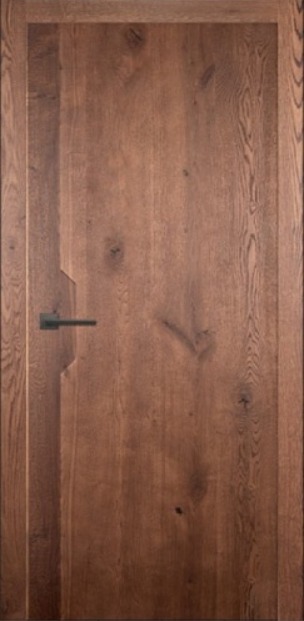 Межкомнатная дверь LEGNO 5 в темном цвете ДУБ МОРЁНЫЙ белорусской фабрики "Ока" в современном стиле. Полотно выполнено по технологии DSW, а каркас и внешние панели из 100% массива дуба, внутренняя часть двери — массив ольхи.
